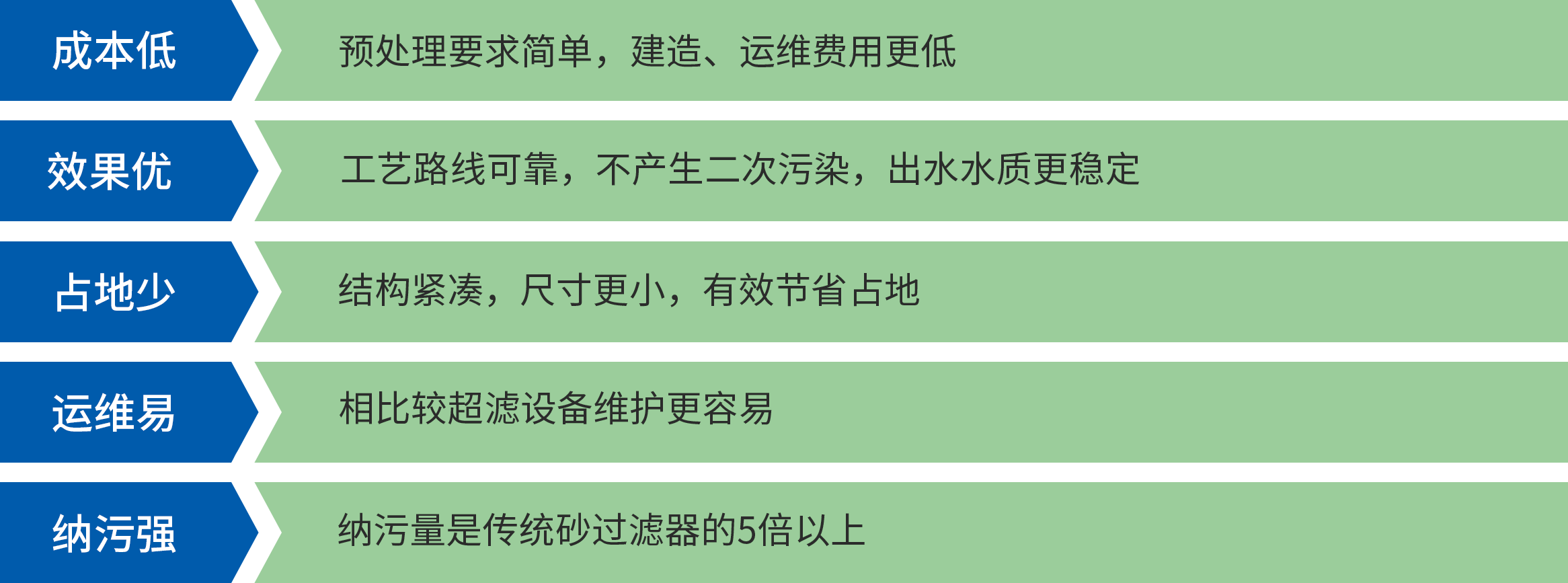 该模块广泛应用于工业废水循环利用领域,可作为 ro 的预处理,深度去除ss、色度,保障cod指标,解决常规过滤工艺效果差、运行成本高的问题,可替代超滤膜,节省投资、提升效能。